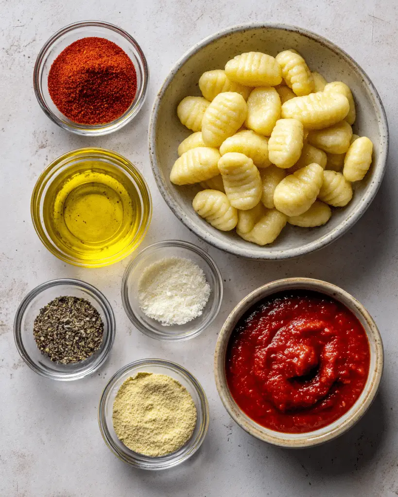 Marinara Sauce: Adds moisture and brightness that balances the crunchy gnocchi.