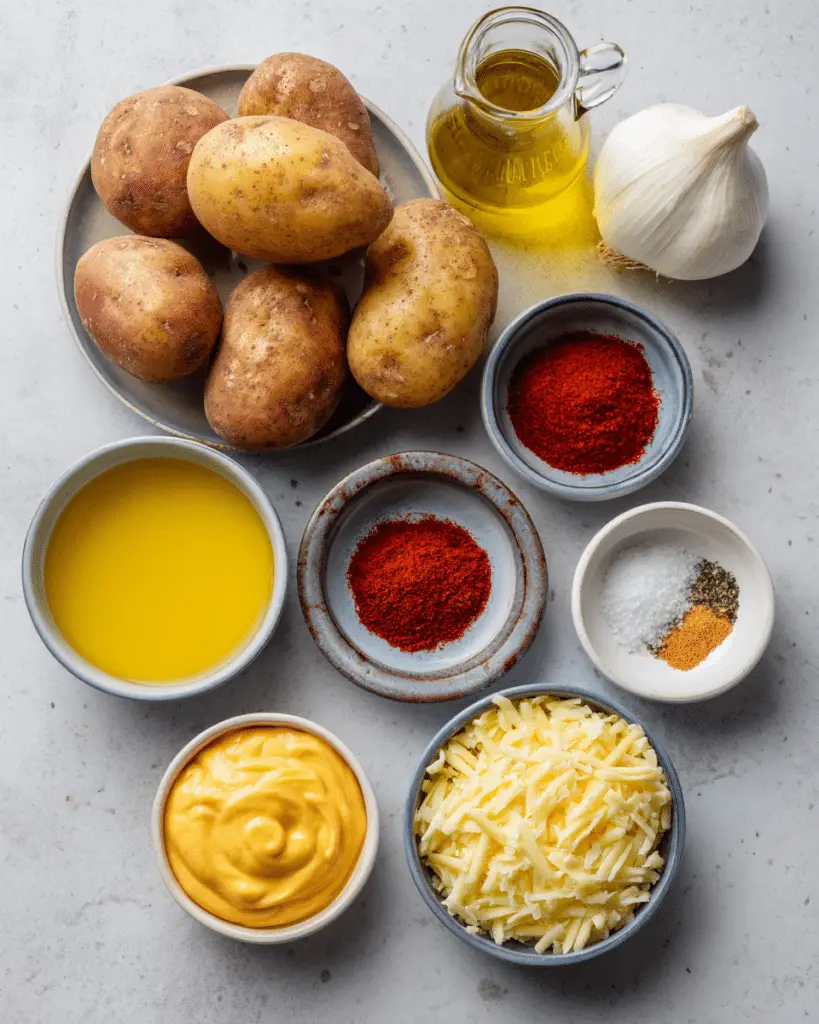 - Russet Potatoes: 4 large potatoes. These potatoes are ideal because they create fluffy interiors and crispy exteriors.