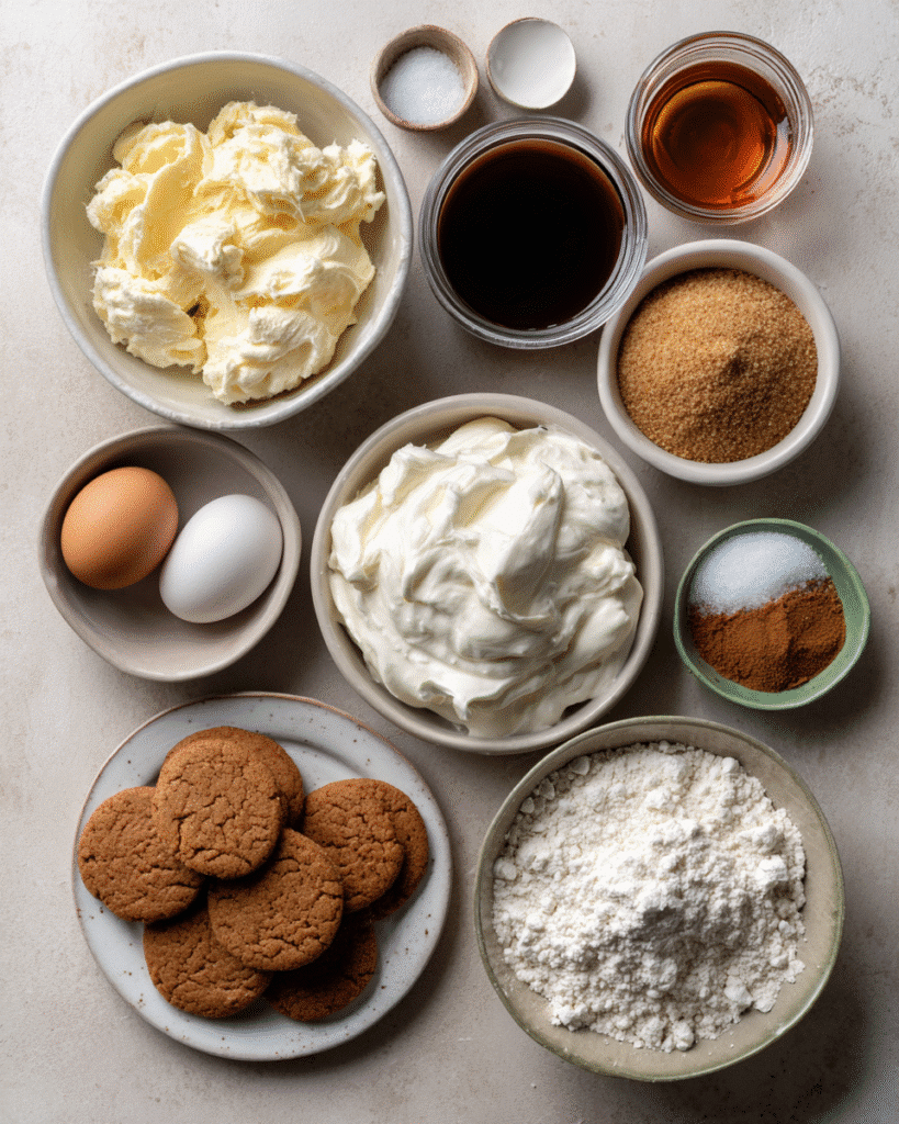 These ingredients work together to create a cheesecake that is rich, creamy, and deeply spiced, with a base that adds texture and warmth to every forkful.