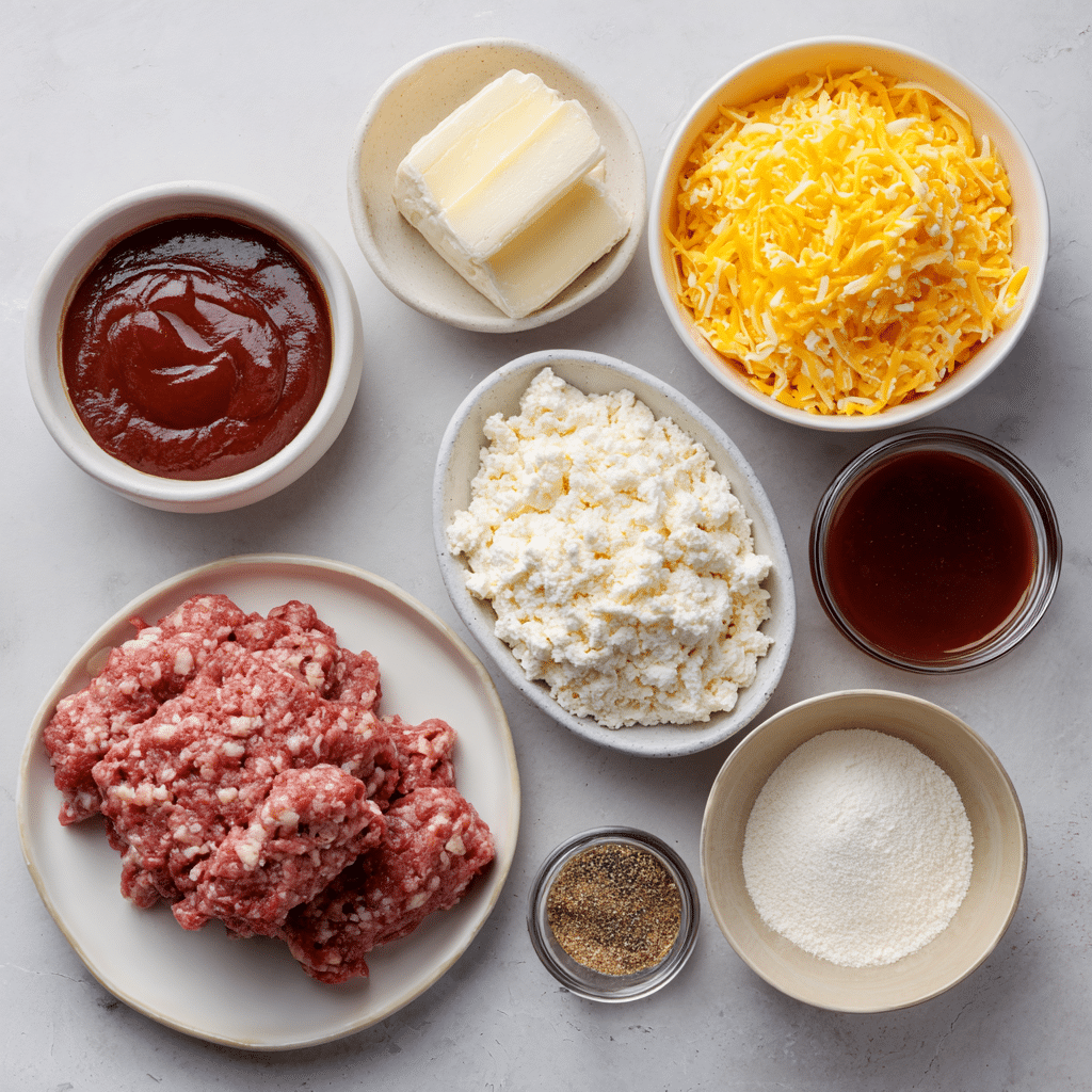 And now let’s dive into the heart of the recipe, because every ingredient here has a job to do. The magic is in the balance, savory sausage, creamy smoked cheese, sharp cheddar, and just enough baking mix to hold everything together while keeping the texture tender.